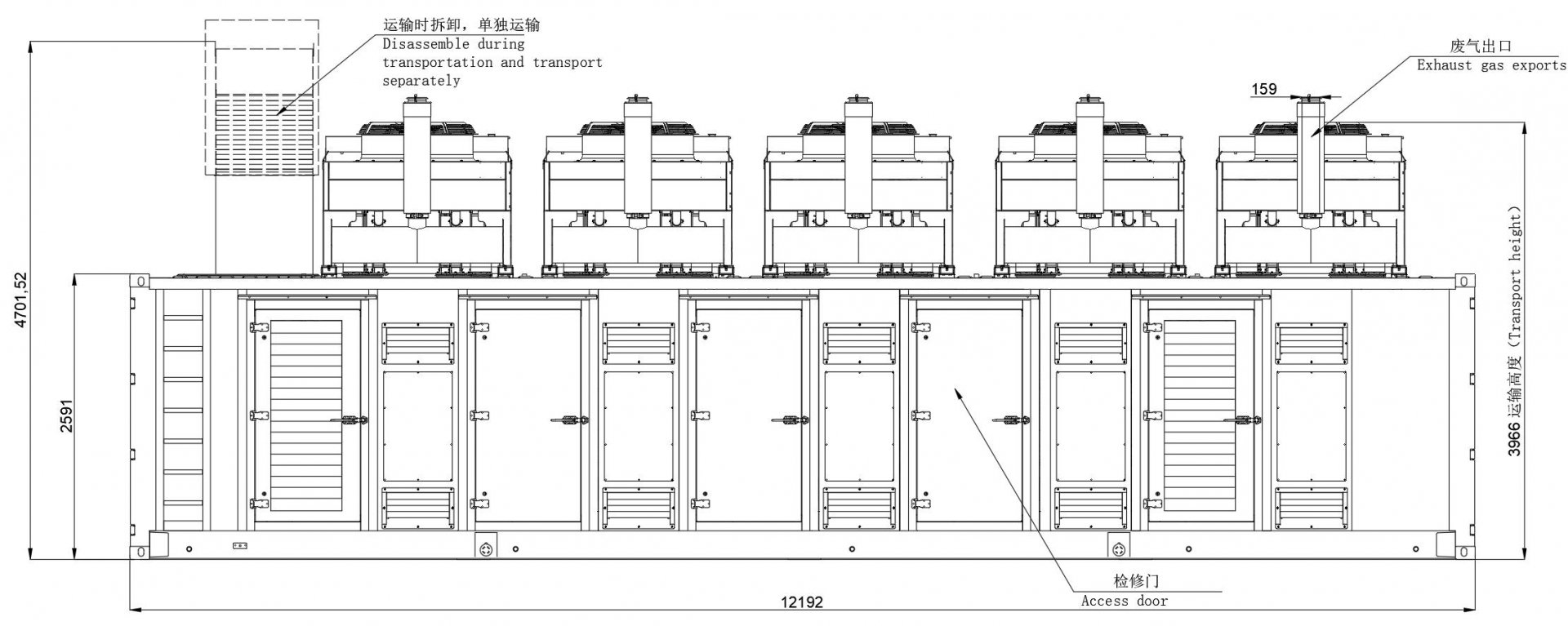 1. La unidad es compacta y se adapta bien a su uso modular en contenedores. Se puede ensamblar, conectar en paralelo y ajustar libremente según la carga real.